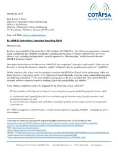 2026 01 26 COTAPSA Letter to Hon. Robert J. Flack re OMERS Stakeholder Complaints Bill 68